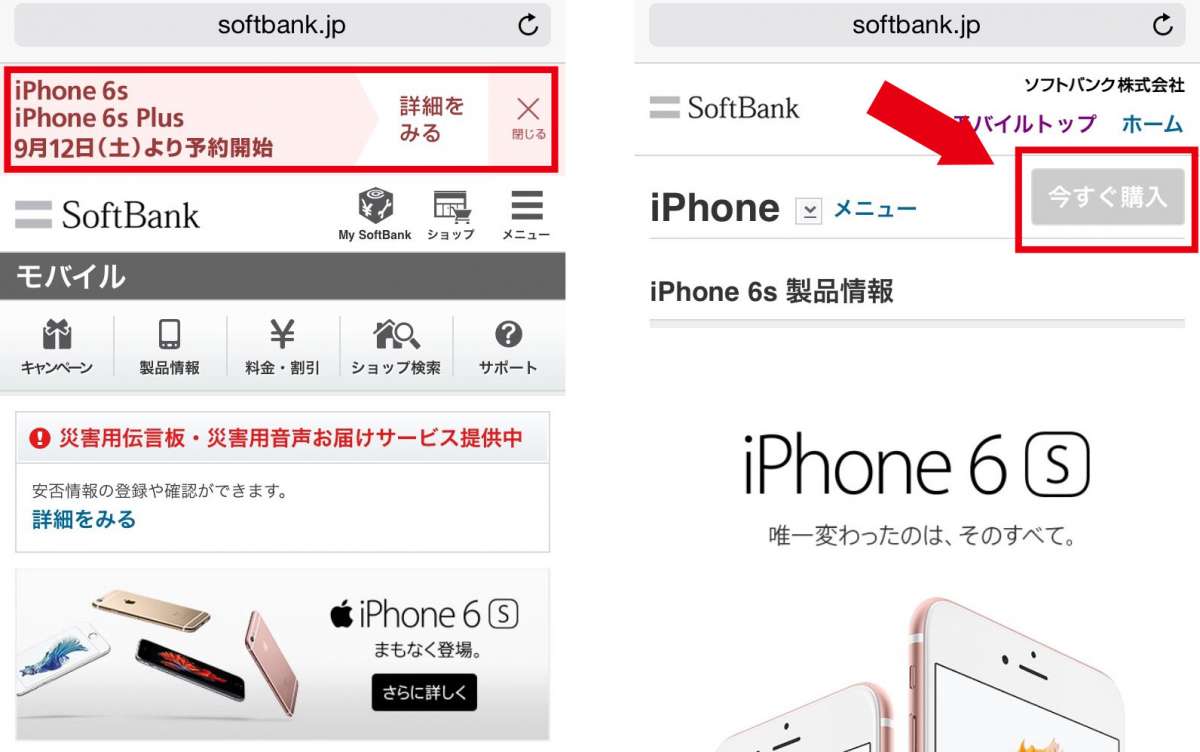 iPhone6s/6s Plus をソフトバンクで予約(機種変更・新規・MNP)する方法